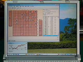 画面はXGAだから、通常使用には必要十分だし、バッテリの保持時間(公称4〜5時間とか?)も実力2時間程はありそうで、結構便利に使えそうだ。...文字が小さいのは仕方ないが、将棋の駒などなら、それ程細かくはならないのが良い!)