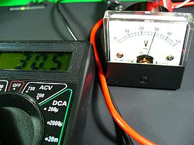 3つのメータで同じ電圧を見たら、それぞれ表示が最大5%ほど、違っていました。ま、こんなものか!?(左写真<クリック>)
