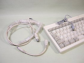 「カチャカチャ型」を予備役に回すにしても、「誤打鍵型」よりは使う頻度は多いはず。でも、これのコネクタが大変な時代物!変換用のコードを介さないとPS/2に繋げません。