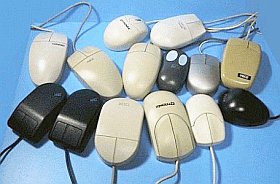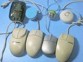 場所を取らないので、小さい方が好きなのですが、やはり大型のものの方が使い易いようです。例えば、右上の写真の中で、左上のCompaq印やNEC印などです。他方、小型のものは、ボールが軽いせいか、望み通りの動きをしてくれない時が、往々にしてあります。