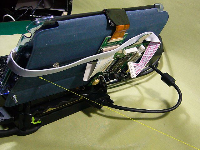 ドライバ・ボード」を"カバー"の内側に留めて、「VGAケーブル」や「電源コード」を下から接続するようにしたら、かなり、スッキリ!(図2[クリック]