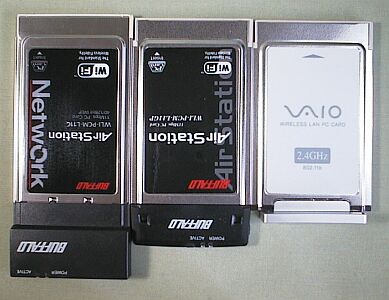 The left side picture shows three type of wireless LAN cards. (left : normal type, mid : medium short type, left : short type = PCWA-C150S)