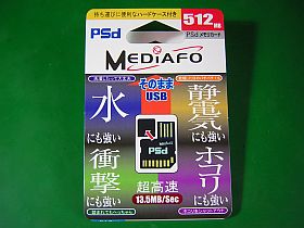 ムービ・カメラMovixIII用に、512MBが最大&最適と分かったけど、手持ちが少ないのが(何気に!)不安で、日本橋で特価品を(5個も)買って来ました。(PSd MEDiAFO \150/個税込)