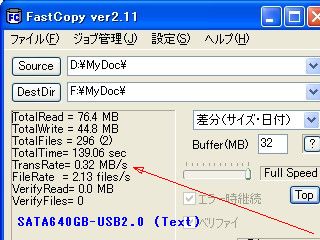 転送速度が分かる「データ転送用のソフト」で、最初に目に付いた「FastCopy」を使わせて頂いて、各状態毎で調べてみた。(感謝!<(_"_)>)