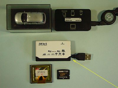 xDカードとCFカードの両方が扱える「マルチ・カード・リーダ/ライタ」を買って、使い易いように改造した。(¥704送料込み)