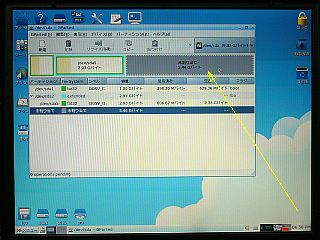 これをこのまま、領域拡張出来ないかと、Puppy LinuxGpartedなどで眺めたけど、手立て無し!