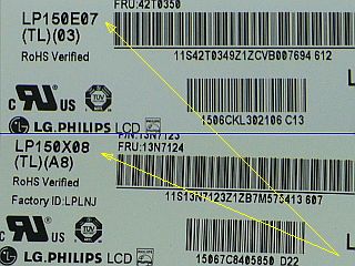 偶々、両方の品番がよく見えたので、先ずそれらをネットで調べてみたら、何と!LP150E07(TP R60搭載品)は“SXGA+”と判明!(知らないでいて、発見があると、嬉しいものですね♪)