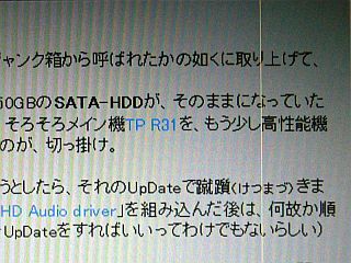 ・・・ そこで、テスト的にここ以降の文章書き込みを、このTP R60側でやってみることにしました。と書いても、別段文字に色が着くわけでもなく、見栄えが変わるわけでもないのですが。