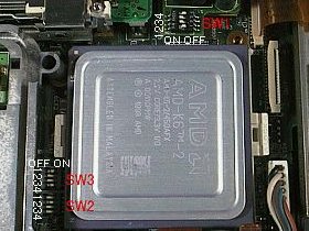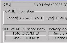 今まで、(デスク・トップ代わりにしていた)TP310、K6-2(300MHz)を233MHzで動作させていたのですが、今回買ったCPUで400MHzに挑戦してみました。
