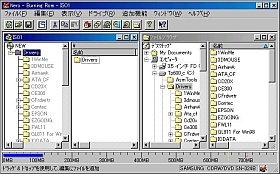 これには、Nero5という書込み用ソフトが添付されていましたが、始めは使い慣れているBe'sRecorderでやってみようとしたら"ドライブが無い!"って文句を言われましたので、あっさり諦めて、大人しくこの添付ソフトを使う事に。