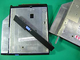 後で、余っていた別のThinkPad用CDDユニットと(コネクタ、外枠、ベゼルなどを付け替えて)入替えて使う事にしました。(他の枠を外すのは楽ですが、ベゼルの取り外しは、なかなか厄介ですねぇ)