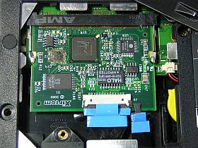 基板上にXircomの文字はみえるのですが、機種名が分からず。それに、片方の小コネクタ(モデム用?)が浮いてるから、どうやらComboでは無さそうな雰囲気。