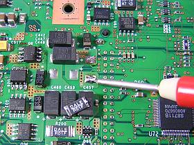 良くは分かりませんが、推測では“CPUか、その周辺LSIの内部で、Vcc−GND間ショート”ではないかと思うような症状。(各所の電流検出用(?)低抵抗を外したりして調査した結果)