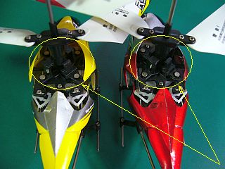本物のヘリのように、「スワッシュ・プレート」を使用した方式ではないようですが、これでも“前後左右”に動かせそうな感じ。(左写真)