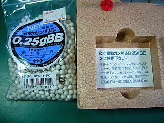 そんなBB弾の手持ちは(添付のものしか)無いので、週末に日本橋で、ご指定の0.25gTOKYO MARUI製)を買って来た。