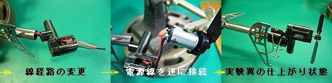 今回、試に、その尾回転翼の向きを変えて前進-後進に使ったらどうなるか?と、改造を始めました。(左上写真)