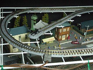 平面8文字ループだと、高価な「X型交差線路」などが必要になり、手持ちは無いから新たに買い足さねばならない。...が、そうするほどの魅力は無い。