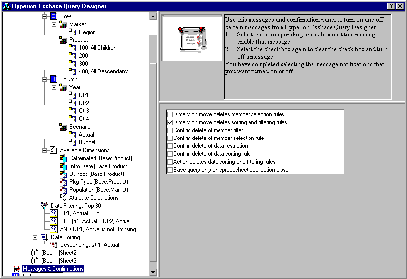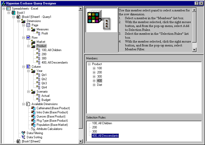 Hyperion Essbase Query Designer displays
