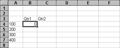 3. In cell B4, type 0 in cell B4 to provide Essbase with a data cell reference point.