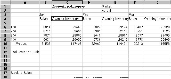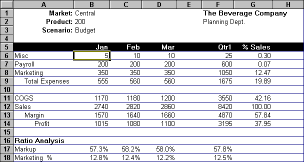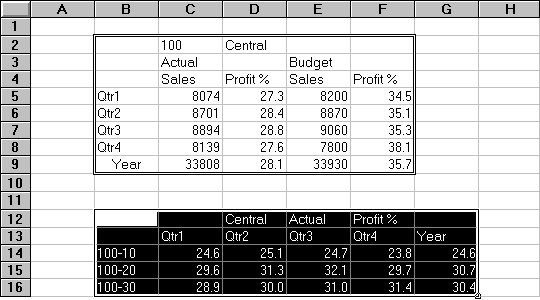 In addition to providing flexible, ad hoc retrievals, Essbase supports retrieving data into formatted worksheets. A worksheet can contain the following formats:
