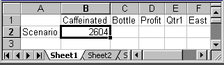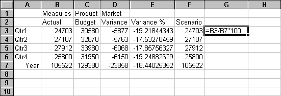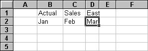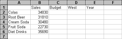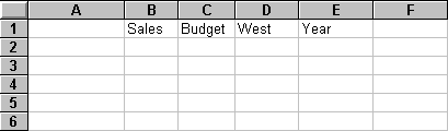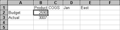The Sample Basic database you are using for this tutorial does not contain predefined substitution variables. If the application designer had set a substitution variable in the database you are using, you could enter a substitution variable directly into a worksheet. For example, you could open a blank worksheet and type member names as follows: