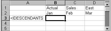 3. In cell A3, type <IDESCENDANTS Product. Press Enter.