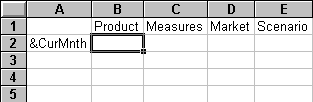 Notice the substitution variable (CurMnth) in cell A2. When you enter a substitution variable directly into a cell, you must precede it with an ampersand (&).