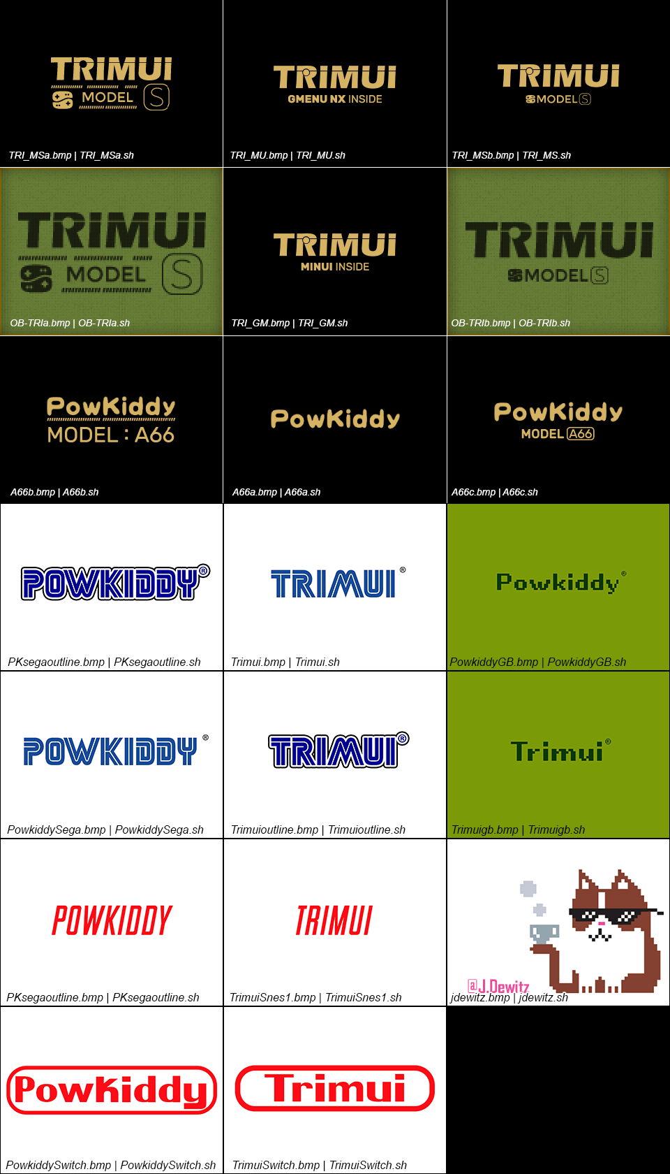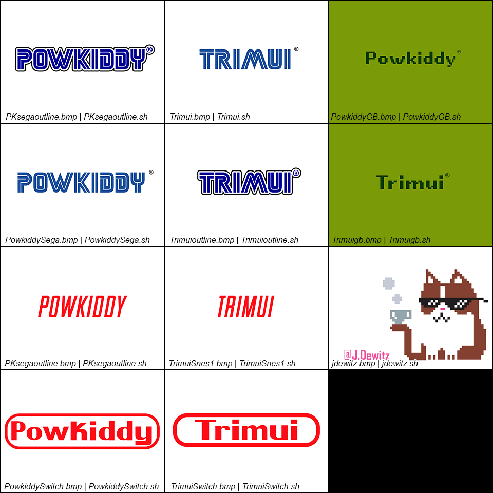 Name Size Parent Directory - eggs/ - hebinotsubo/ - jdewitz/ - bootlogos.png 206K bootlogos.zip 105K customlogo.sh 94 jdewitz_logos.png 109K trimui_logos.png 100K