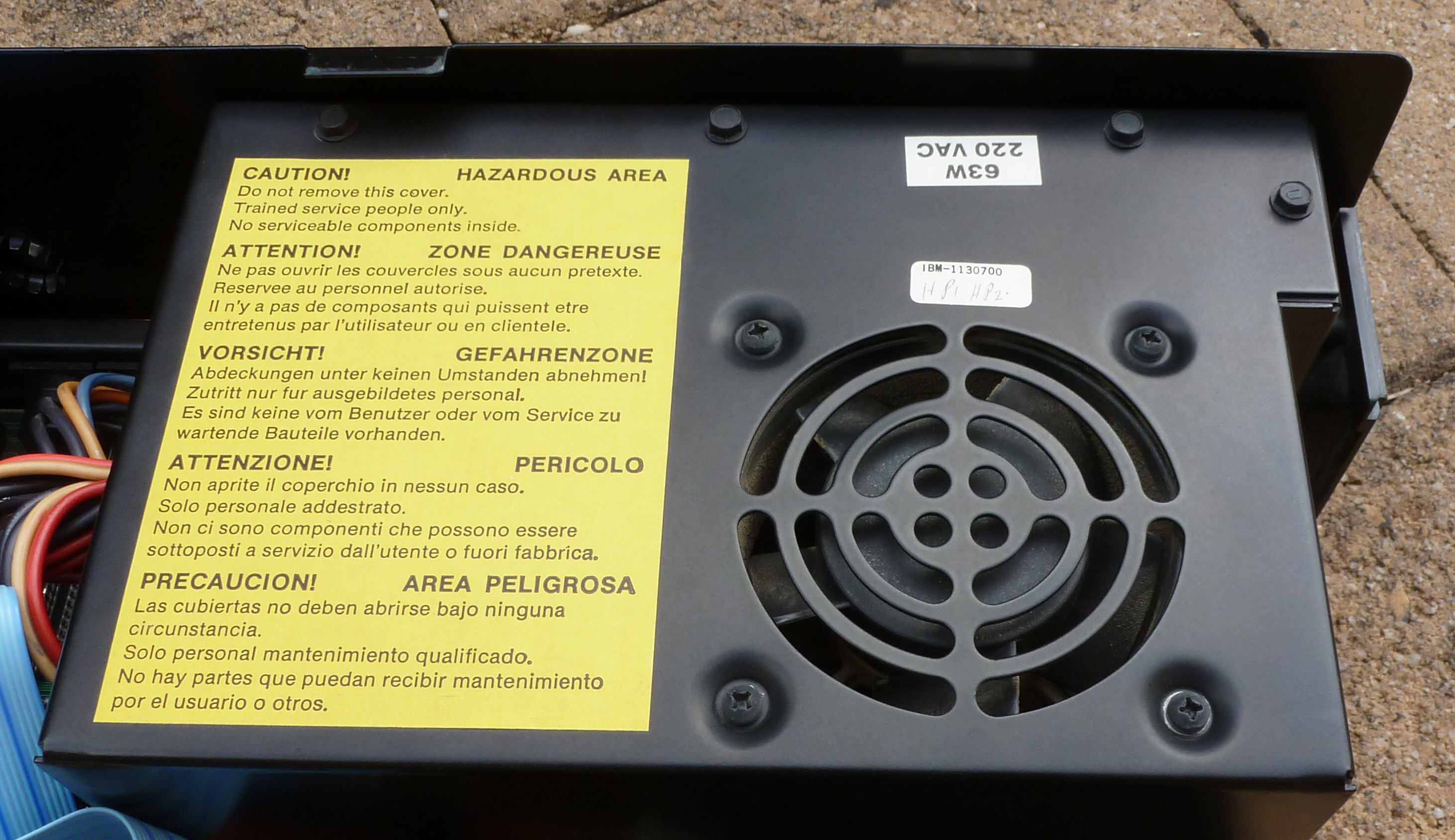 Yellow sticker, and fan nuts moved to inside of case. ( note: This is a 220 VAC version ) ( photo source: modem7 at the VCFF ) |