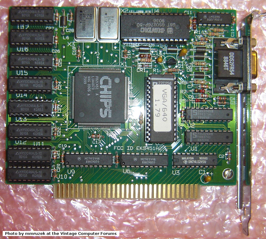 | Note 2 | I have one of these cards. The VGA-16 user's guide indicates 5150 (IBM PC) compatibility, and indicates how to force the card into 8-bit operation. But whilst I can get my card to operate in a 16-bit slot, I have been unable to get my card to operate in 8-bit mode (fitted to a 5150/5160/5170). Maybe my card is faulty. Also, I have noted that the user's guide indicates an FCC ID of D2A62LTJWBJC, whereas my card has the FCC ID of D2A62LVGA16. Maybe I have a later version of the card, in which 8-bit operation was dropped! |