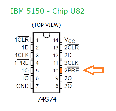 | Step 7.2 | If an IBM 5160, on the data pins (D7 to D0) (Q7 to Q0) of ROM chip U18, expect to measure the data of EA hex (1110 1010 binary). See here. |