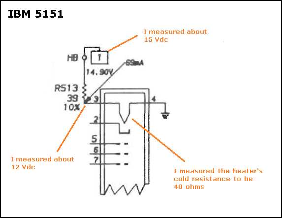 CRT filament  (cathode heater) Yes Uses 15 Vdc out of power supply.  Diagram here.