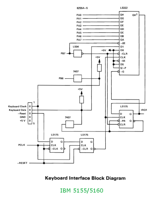 | • | The 5160 motherboard does not have a keyboard controller chip. Instead, it uses discrete components - see here. |