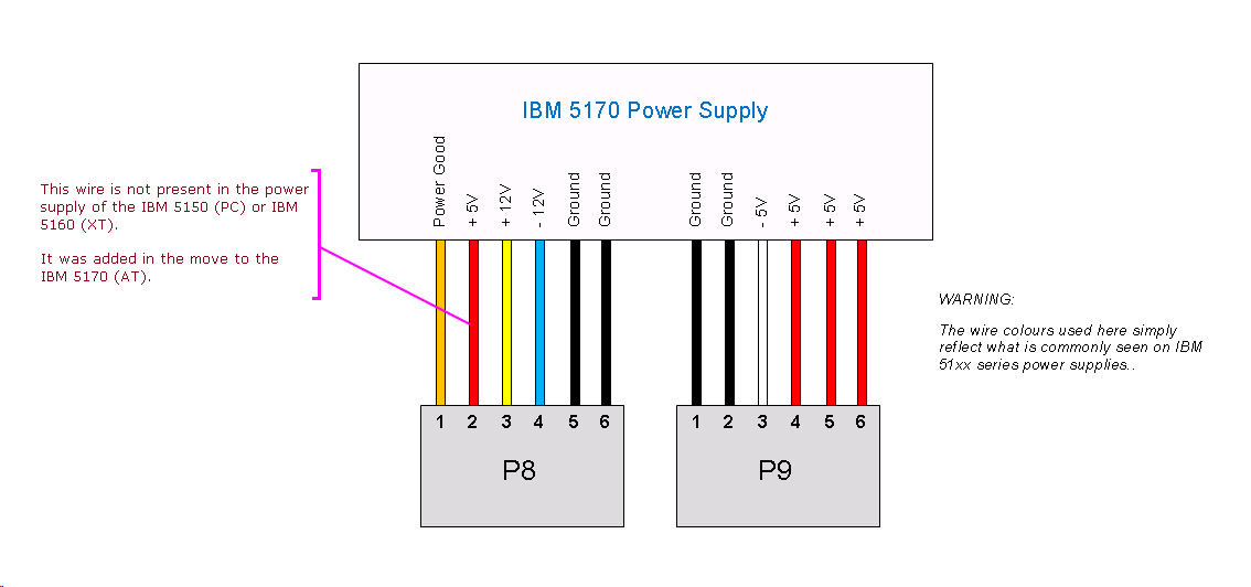 Powering a 5170 motherboard using an XT-class power supply can sometimes cause problems.