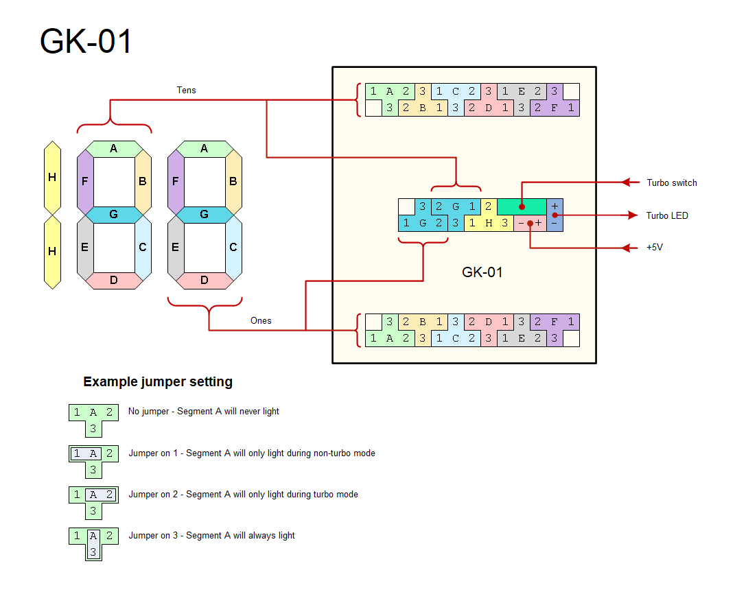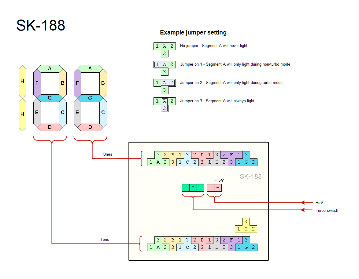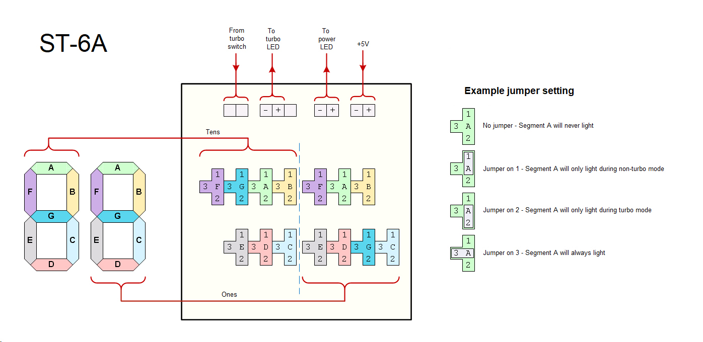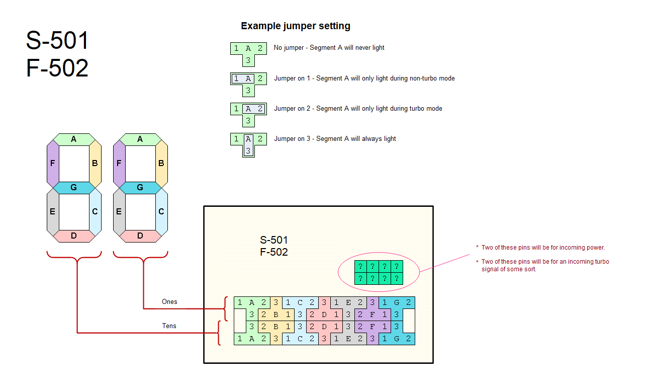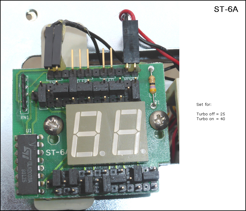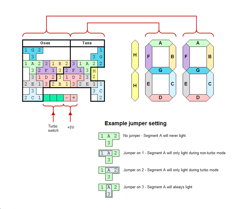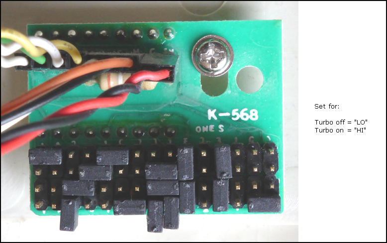 Top jumper row controls TURBO display, bottom jumper row controls NON-TURBO display.