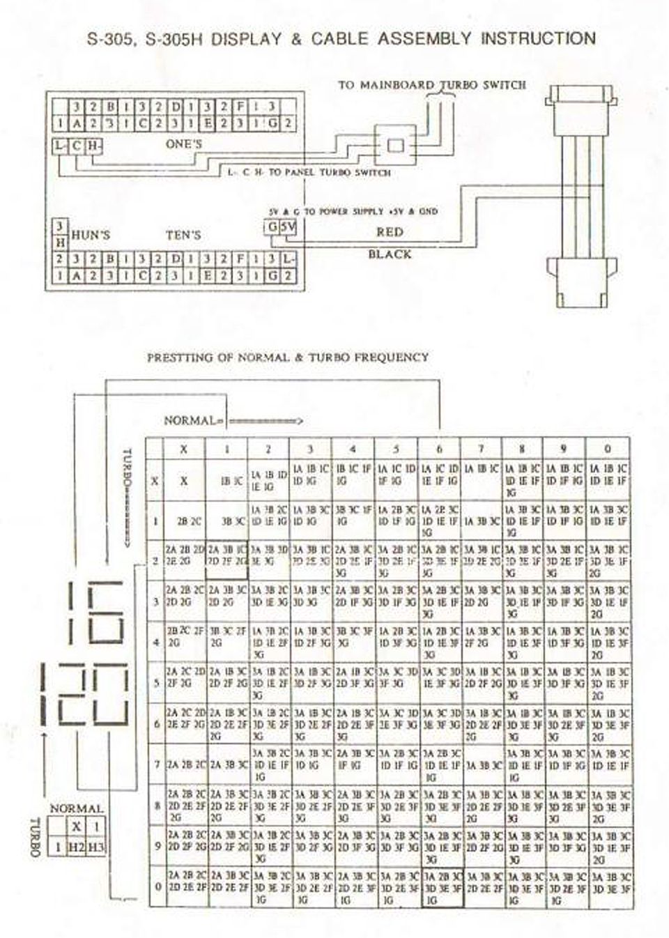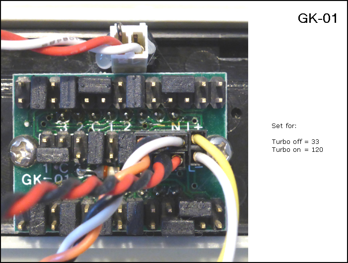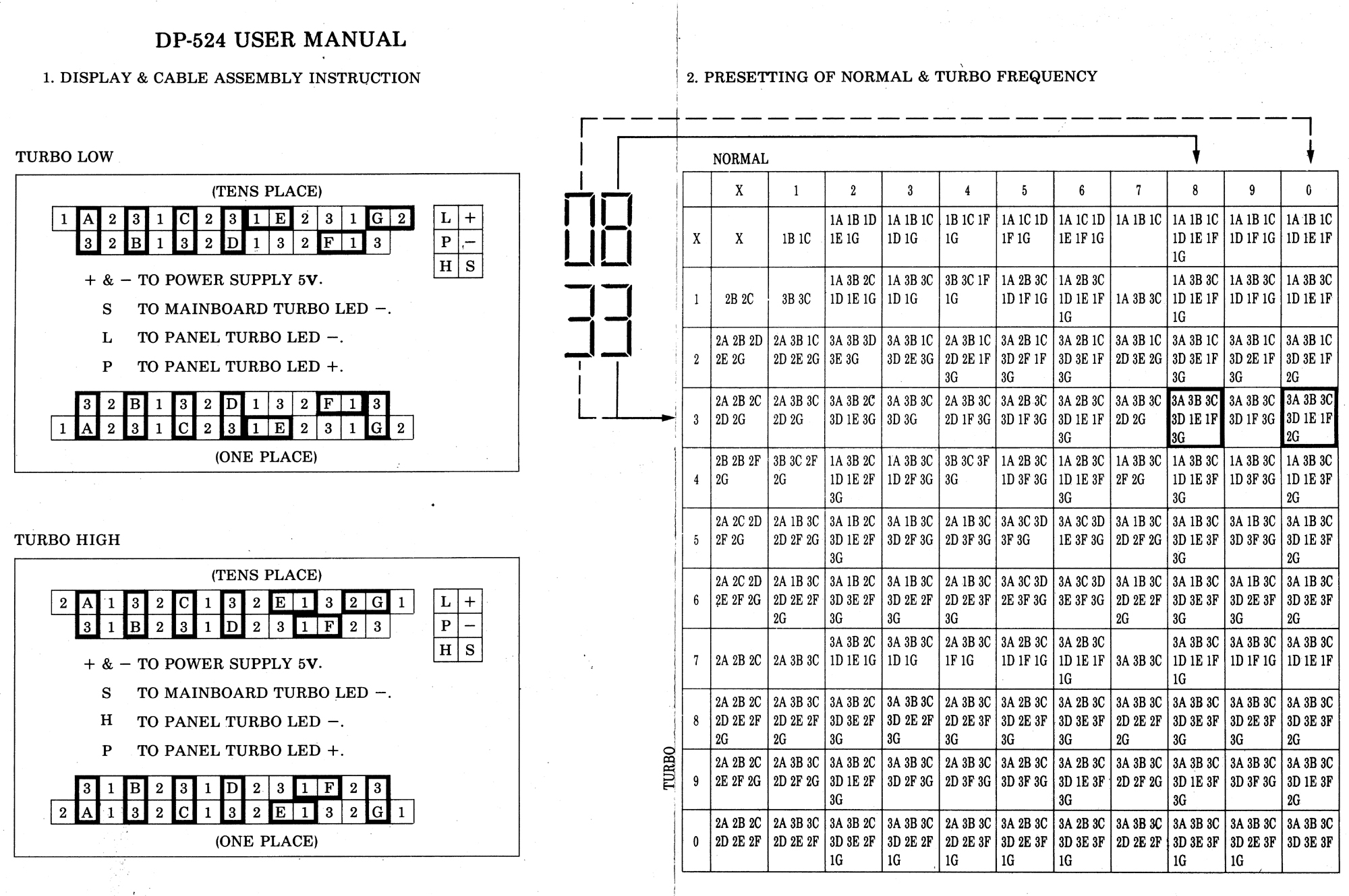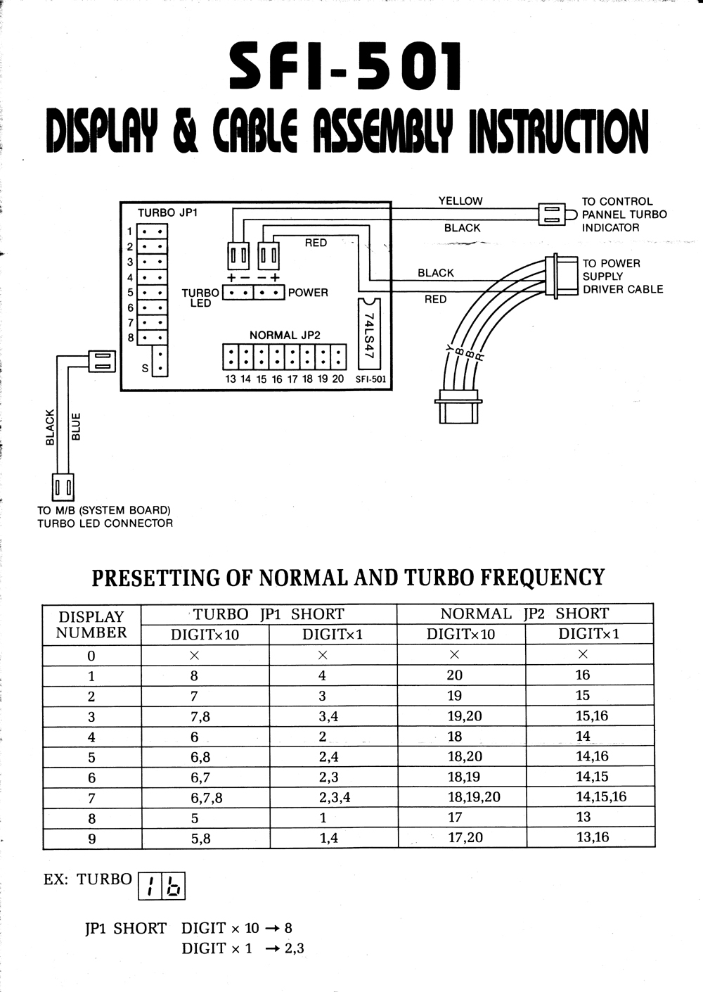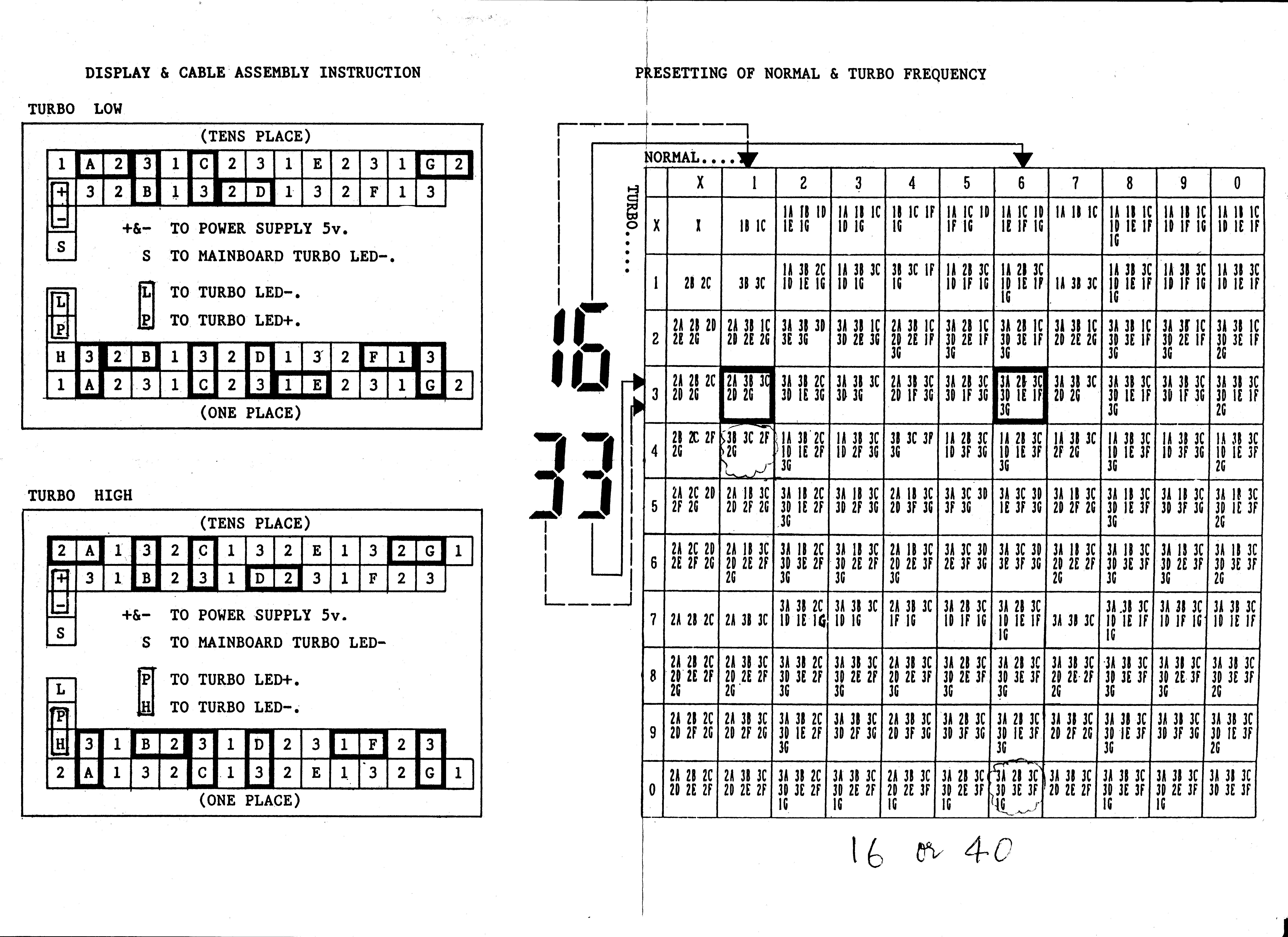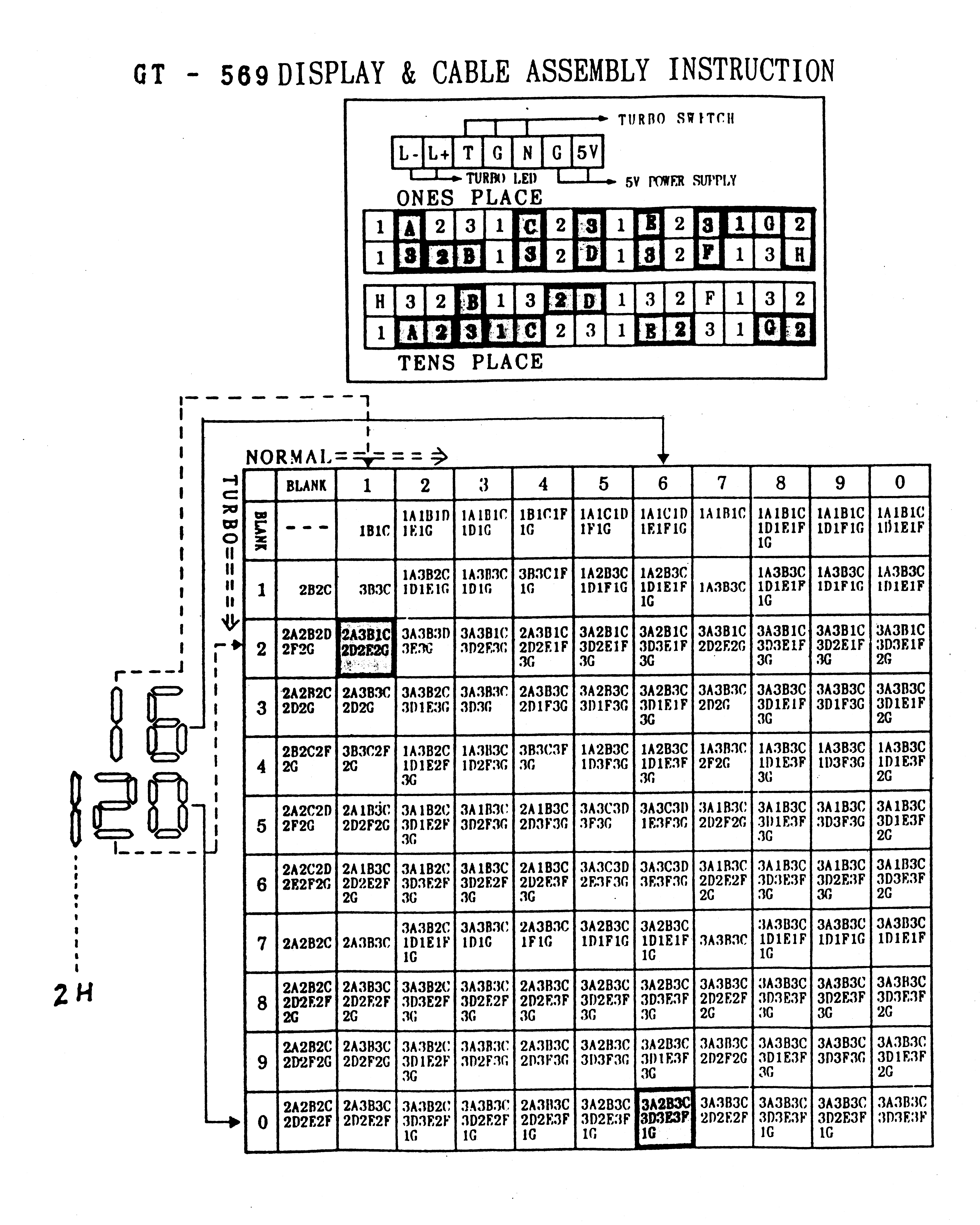 Top jumper row controls TURBO display, bottom jumper row controls NON-TURBO display.