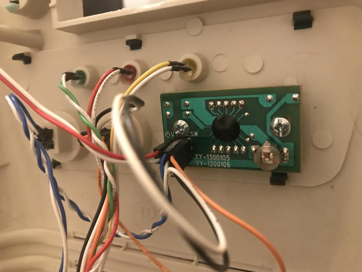 A chip (beneath the white substance) lights the LED elements, based on the jumper settings.