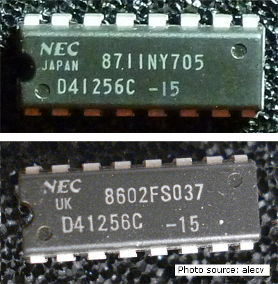 | NEC | µPD41256C-12 | 120 ns | NMOS | 256cycle/4ms | photo | 41256 list 1 | 41256 list 4 | 41256 list 5 | datasheet | As shown in photo, the prefix of "µP" is not printed. | |