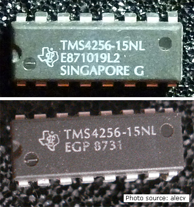 | Texas Instruments | TMS4256-15 | 150 ns | NMOS | 256cycle/4ms | photo | 41256 list 1 | 41256 list 3 | 41256 list 4 | 41256 list 5 | datasheet | Also 41256 list 2 |