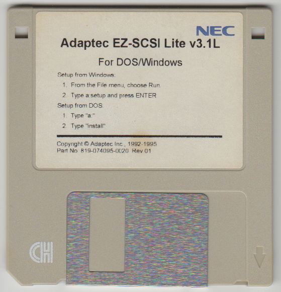 Adaptec EZ-SCSI Lite 3.1L (dated 1995)  (photo of diskette)