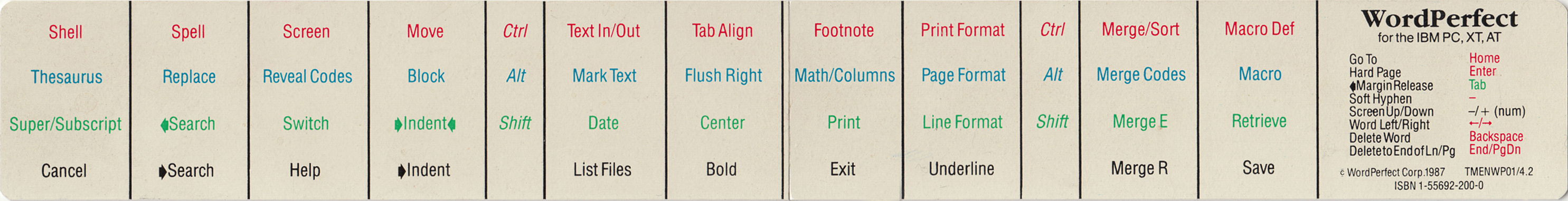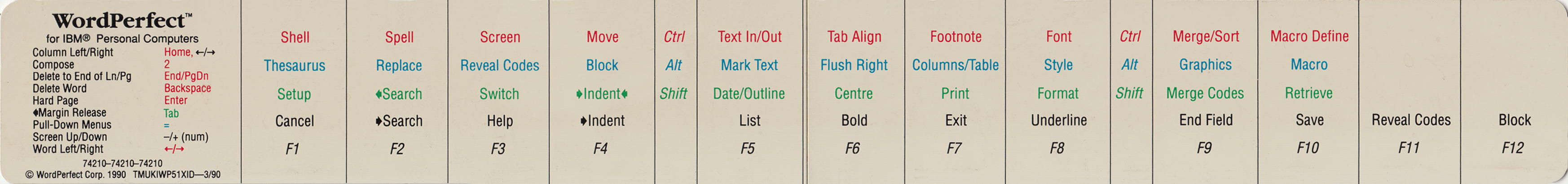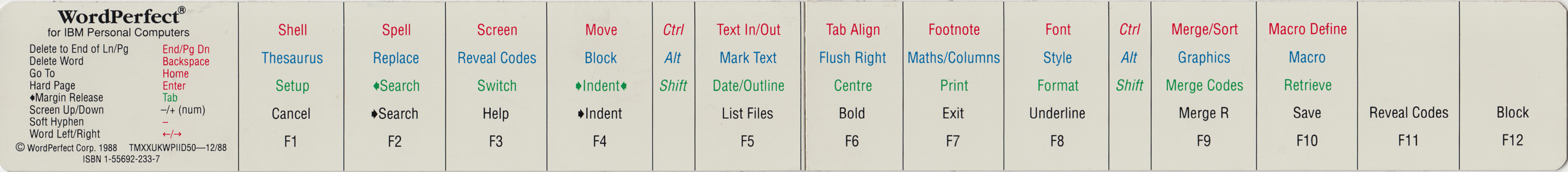 WordPerfect 5.0 - keyboard template - top      (1988)