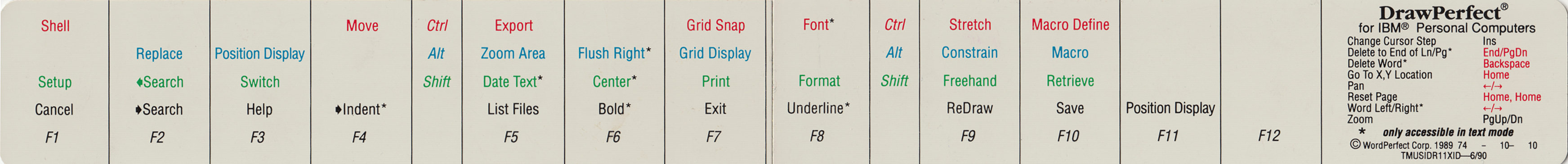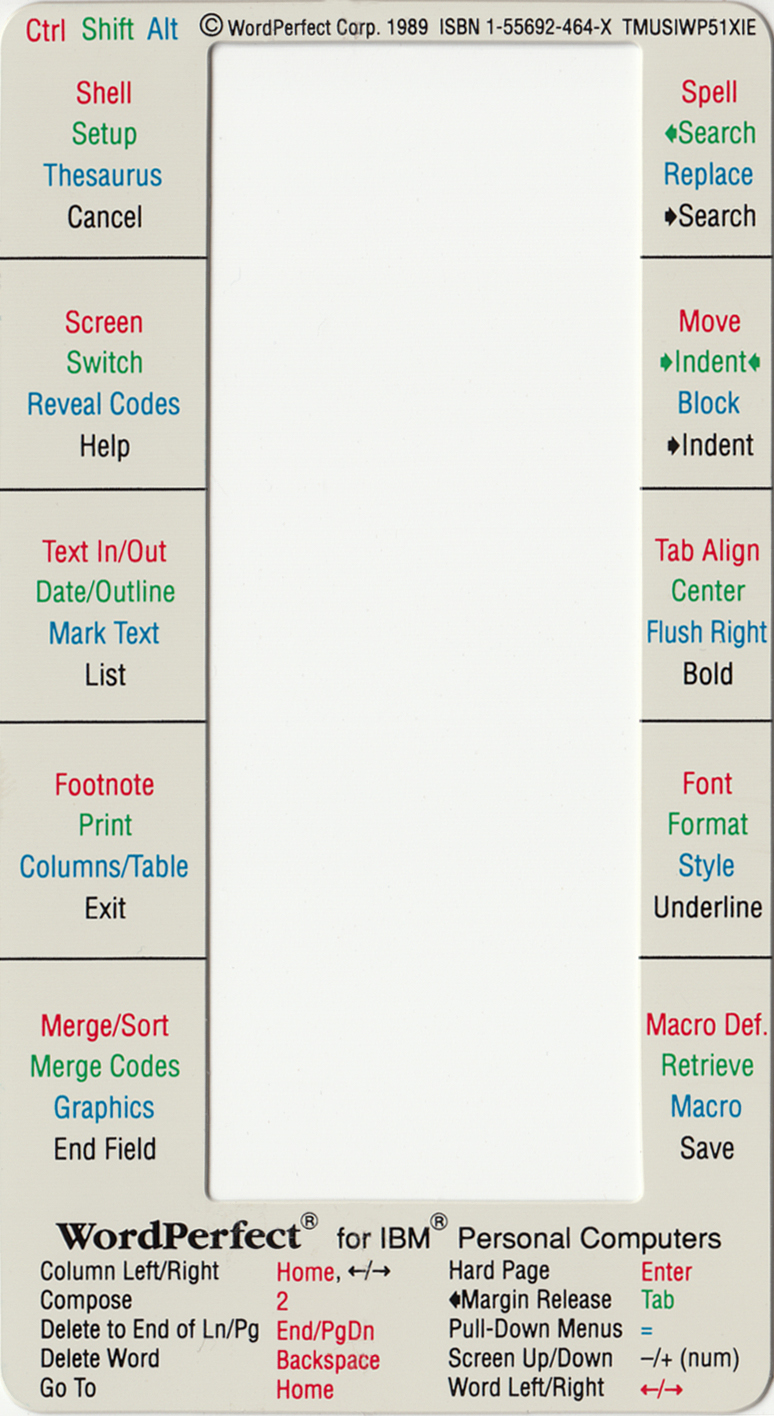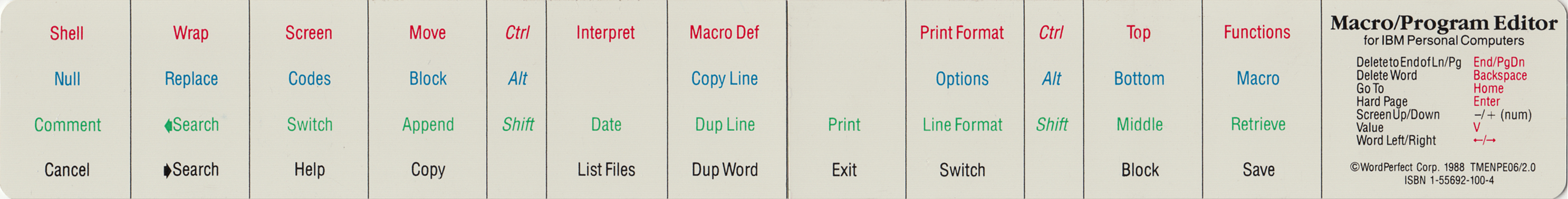 WordPerfect 5.0 - keyboard template - top      (1988)