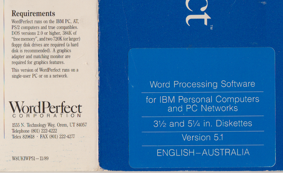 WordPerfect 5.1 - Installation disks (1989) (Australian version) (images of 720K sized disks) (use WinImage software to create 720K disks from supplied images)