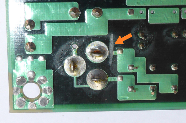 STEP 4: On the motherboard's solder side, cut the green trace pictured (cut) at here.