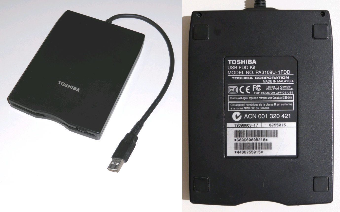 Toshiba model PA3109U-1FDD Teac FD-05PUB   Windows 10 shows "TEAC FD-05PUB USB Device".  See note 1.