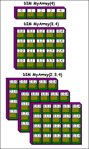 Multi-dimensional arrays are not a problem, as long as you get the order correct: right to left. In the example, the line has been split. This is not a problem, but you must still include a comma at the end of the split line, just as you would if it was continuous.