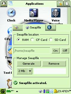 Taskbar Applet displaying current memory usage. Also allows to manage swapfile.