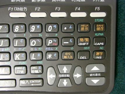 キーが段毎にずらしておらず、 碁盤の目状に配置されているのは 打ちずらい気がするけれど、 中文入力ならそんなことはないんだろうか。 機能ボタン |