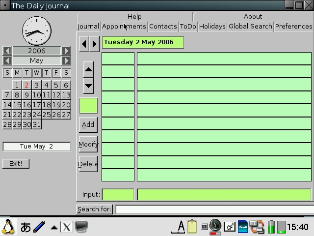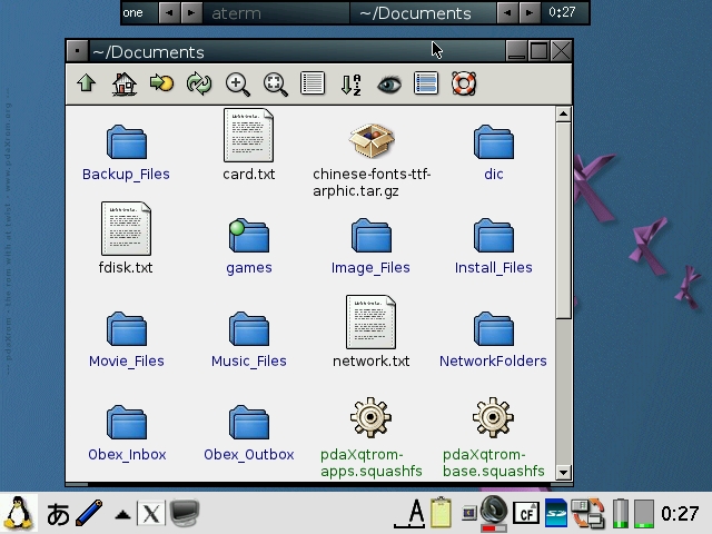 The applications for pdaXqtrom are mostly the same version as the ones from pdaXrom. However, I tweaked and hacked a few of them to make them more user-friendly.